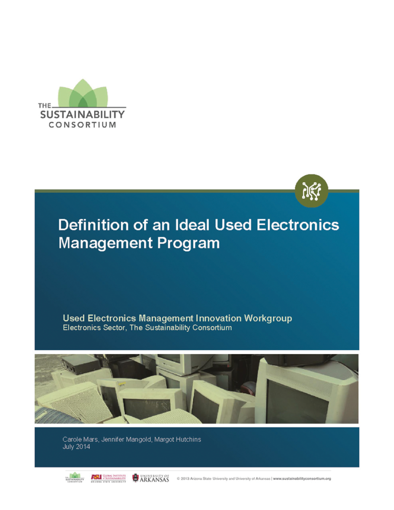 The goal of this document is to present an Ideal Used Electronics Management Program Definition that facilitates organizations designing or implementing such programs.
